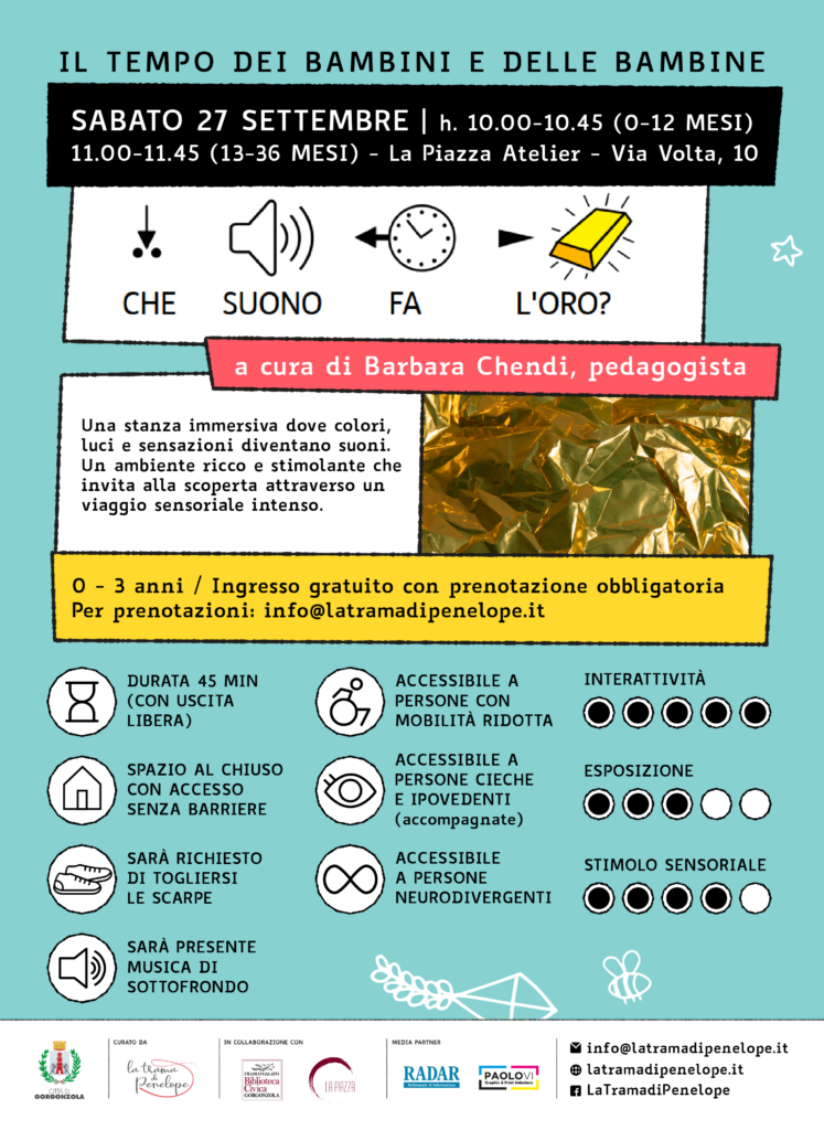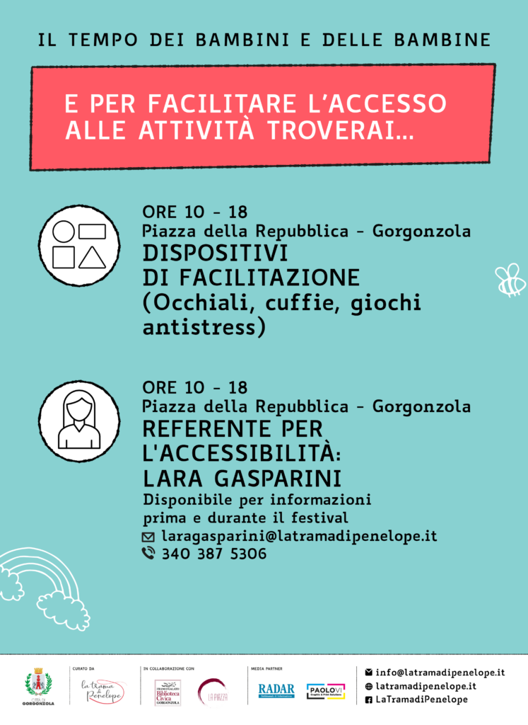 Per esigenze specifiche vi invitiamo a scrivere a info@latramadipenelope.it oppure alla nostra Referente per l’accessibilità Lara Gasparini laragasparini@latramadipenelope.it.