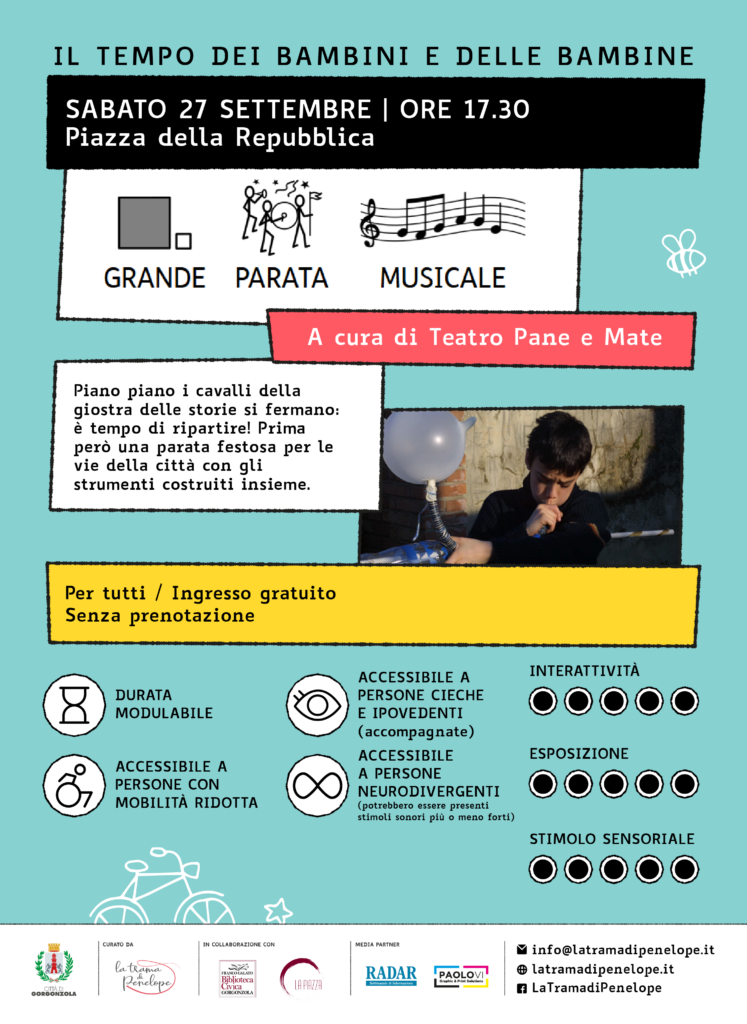 Per tuttiPiano piano i cavalli della giostra delle storie si fermano. E’ tempo di ripartire! Ma prima celebreremo insieme la giornata trascorsa con una festosa parata per le vie della città con gli strumenti costruiti.